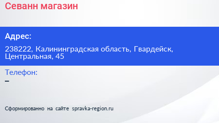 Севанн, магазин по адресу 238222, Калининградская область, Гвардейск, Центральная, 45 в дальнейшем Организация, размещена в следующих категориях: