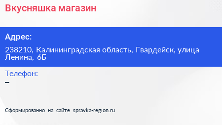 Адрес: Калининградская область, Гвардейск, улица Ленина, 6Б