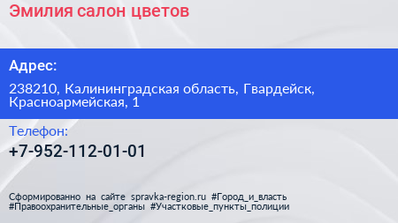 Эмилия, салон цветов по адресу 238210, Калининградская область, Гвардейск, Красноармейская, 1 в дальнейшем Организация, размещена в следующих категориях: