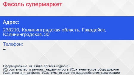 Фасоль, супермаркет по адресу 238210, Калининградская область, Гвардейск, Калининградская, 30 в дальнейшем Организация, размещена в следующих категориях:
