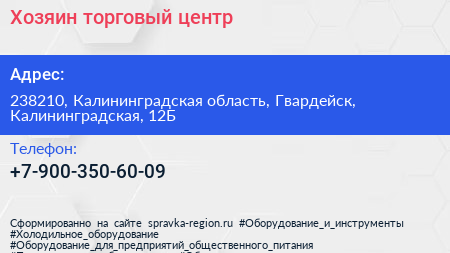 Хозяин, торговый центр по адресу 238210, Калининградская область, Гвардейск, Калининградская, 12Б в дальнейшем Организация, размещена в следующих категориях: