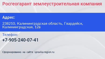 Росгеогарант, землеустроительная компания по адресу 238210, Калининградская область, Гвардейск, Калининградская, 12в в дальнейшем Организация, размещена в следующих категориях: