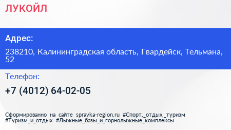 ЛУКОЙЛ по адресу 238210, Калининградская область, Гвардейск, Тельмана, 52 в дальнейшем Организация, размещена в следующих категориях: