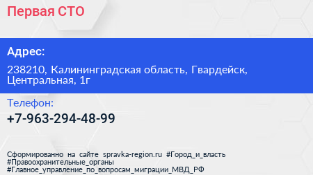 Первая СТО по адресу 238210, Калининградская область, Гвардейск, Центральная, 1г в дальнейшем Организация, размещена в следующих категориях: