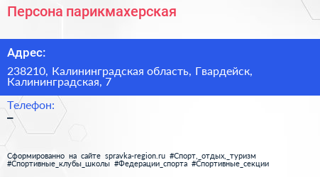 Персона, парикмахерская по адресу 238210, Калининградская область, Гвардейск, Калининградская, 7 в дальнейшем Организация, размещена в следующих категориях: