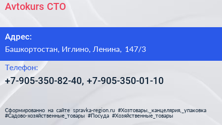 Avtokurs, СТО по адресу Башкортостан, Иглино, Ленина, 147/3 в дальнейшем Организация, размещена в следующих категориях: