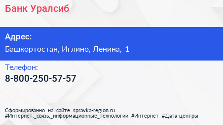 Банк Уралсиб по адресу Башкортостан, Иглино, Ленина, 1 в дальнейшем Организация, размещена в следующих категориях: