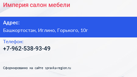 Империя, салон мебели по адресу Башкортостан, Иглино, Горького, 10г в дальнейшем Организация, размещена в следующих категориях: