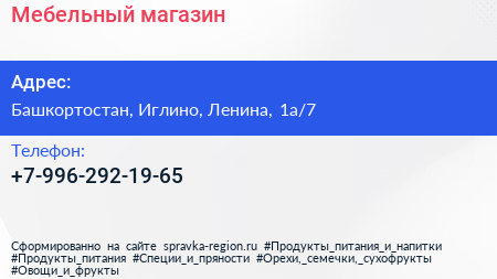 Мебельный магазин по адресу Башкортостан, Иглино, Ленина, 1а/7 в дальнейшем Организация, размещена в следующих категориях: