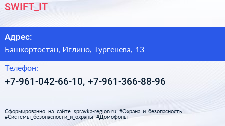 SWIFT_IT по адресу Башкортостан, Иглино, Тургенева, 13 в дальнейшем Организация, размещена в следующих категориях:
