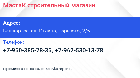 МастаК, строительный магазин по адресу Башкортостан, Иглино, Горького, 2/5 в дальнейшем Организация, размещена в следующих категориях: