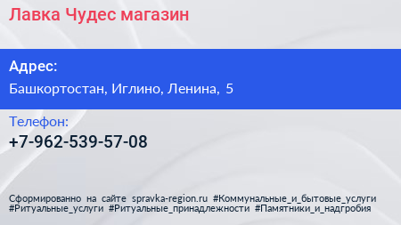 Лавка Чудес, магазин по адресу Башкортостан, Иглино, Ленина, 5 в дальнейшем Организация, размещена в следующих категориях: