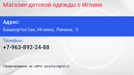 Магазин детской одежды, с. Иглино по адресу Башкортостан, Иглино, Ленина, 3 в дальнейшем Организация, размещена в следующих категориях: