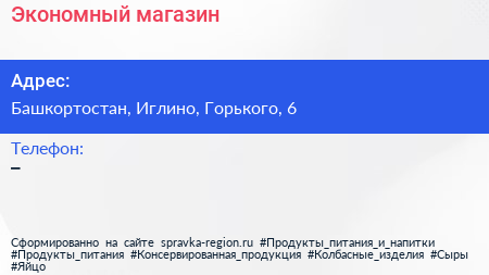 Экономный, магазин по адресу Башкортостан, Иглино, Горького, 6 в дальнейшем Организация, размещена в следующих категориях: