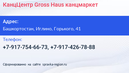 КанцЦентр & Gross Haus, канцмаркет по адресу Башкортостан, Иглино, Горького, 41 в дальнейшем Организация, размещена в следующих категориях: