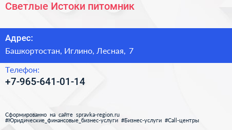 Светлые Истоки, питомник по адресу Башкортостан, Иглино, Лесная, 7 в дальнейшем Организация, размещена в следующих категориях: