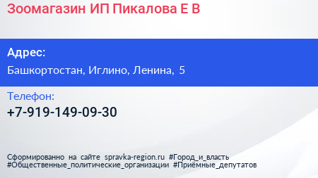 Зоомагазин, ИП Пикалова Е.В. по адресу Башкортостан, Иглино, Ленина, 5 в дальнейшем Организация, размещена в следующих категориях: