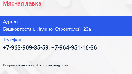 Мясная лавка по адресу Башкортостан, Иглино, Строителей, 23а в дальнейшем Организация, размещена в следующих категориях:
