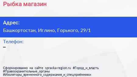 Рыбка, магазин по адресу Башкортостан, Иглино, Горького, 29/1 в дальнейшем Организация, размещена в следующих категориях: