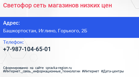 Светофор, сеть магазинов низких цен по адресу Башкортостан, Иглино, Горького, 2Б в дальнейшем Организация, размещена в следующих категориях: