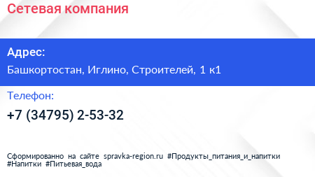 Сетевая компания по адресу Башкортостан, Иглино, Строителей, 1 к1 в дальнейшем Организация, размещена в следующих категориях: