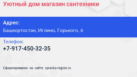 Уютный дом, магазин сантехники по адресу Башкортостан, Иглино, Горького, 6 в дальнейшем Организация, размещена в следующих категориях: