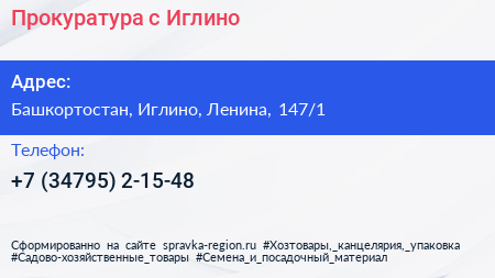 Прокуратура, с. Иглино по адресу Башкортостан, Иглино, Ленина, 147/1 в дальнейшем Организация, размещена в следующих категориях: