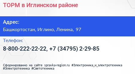 ТОРМ в Иглинском районе по адресу Башкортостан, Иглино, Ленина, 97 в дальнейшем Организация, размещена в следующих категориях: