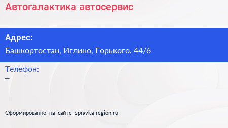 Автогалактика, автосервис по адресу Башкортостан, Иглино, Горького, 44/6 в дальнейшем Организация, размещена в следующих категориях: