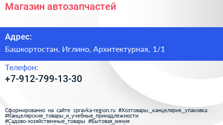 Магазин автозапчастей по адресу Башкортостан, Иглино, Архитектурная, 1/1 в дальнейшем Организация, размещена в следующих категориях: