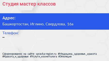 Студия мастер-классов по адресу Башкортостан, Иглино, Свердлова, 16а в дальнейшем Организация, размещена в следующих категориях: