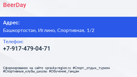BeerDay по адресу Башкортостан, Иглино, Спортивная, 1/2 в дальнейшем Организация, размещена в следующих категориях: