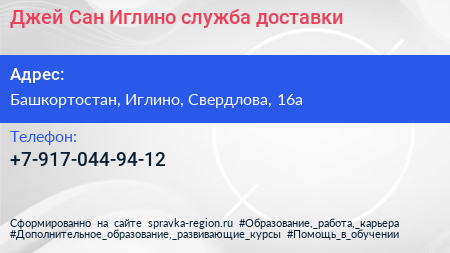 Джей Сан Иглино, служба доставки по адресу Башкортостан, Иглино, Свердлова, 16а в дальнейшем Организация, размещена в следующих категориях: