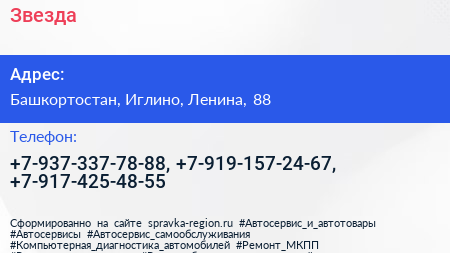 Звезда по адресу Башкортостан, Иглино, Ленина, 88 в дальнейшем Организация, размещена в следующих категориях: