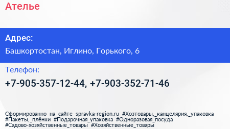Ателье по адресу Башкортостан, Иглино, Горького, 6 в дальнейшем Организация, размещена в следующих категориях:
