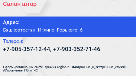 Салон штор по адресу Башкортостан, Иглино, Горького, 6 в дальнейшем Организация, размещена в следующих категориях: