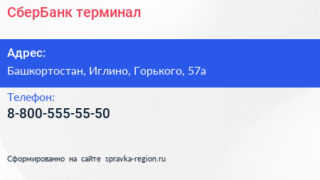 СберБанк, терминал по адресу Башкортостан, Иглино, Горького, 57а в дальнейшем Организация, размещена в следующих категориях: