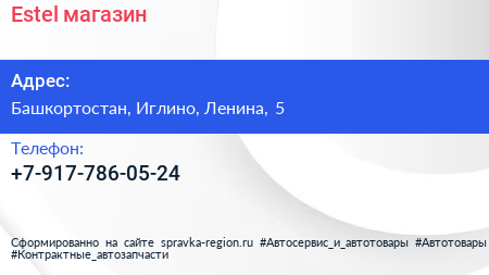 Estel, магазин по адресу Башкортостан, Иглино, Ленина, 5 в дальнейшем Организация, размещена в следующих категориях: