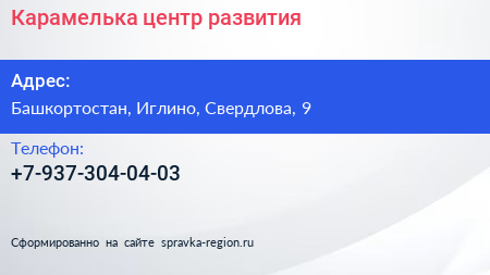 Карамелька, центр развития по адресу Башкортостан, Иглино, Свердлова, 9 в дальнейшем Организация, размещена в следующих категориях: