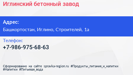 Иглинский бетонный завод по адресу Башкортостан, Иглино, Строителей, 1а в дальнейшем Организация, размещена в следующих категориях:
