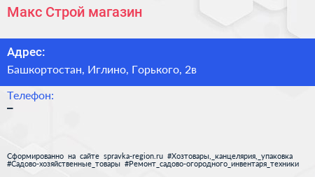 Макс-Строй, магазин по адресу Башкортостан, Иглино, Горького, 2в в дальнейшем Организация, размещена в следующих категориях: