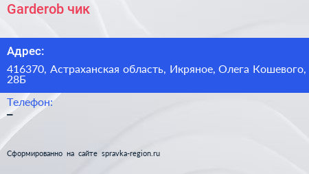 Garderob`чик по адресу 416370, Астраханская область, Икряное, Олега Кошевого, 28Б в дальнейшем Организация, размещена в следующих категориях: