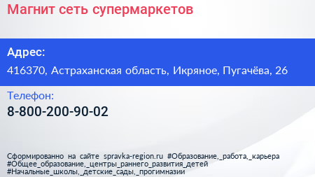 Магнит, сеть супермаркетов по адресу 416370, Астраханская область, Икряное, Пугачёва, 26 в дальнейшем Организация, размещена в следующих категориях: