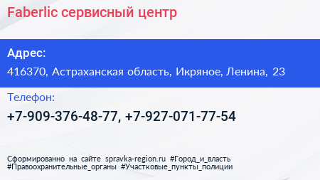 Faberlic, сервисный центр по адресу 416370, Астраханская область, Икряное, Ленина, 23 в дальнейшем Организация, размещена в следующих категориях: