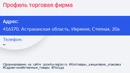 Профиль, торговая фирма по адресу 416370, Астраханская область, Икряное, Степная, 20а в дальнейшем Организация, размещена в следующих категориях: