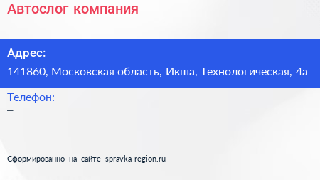 Автослог, компания по адресу 141860, Московская область, Икша, Технологическая, 4а в дальнейшем Организация, размещена в следующих категориях: