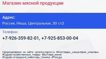 Магазин мясной продукции по адресу 31, Центральная улица, посёлок опытного хозяйства «Ермолино», Дмитровский городской округ, Московская область, Центральный федеральный округ, 141863, Россия в дальнейшем Организация, размещена в следующих категориях: