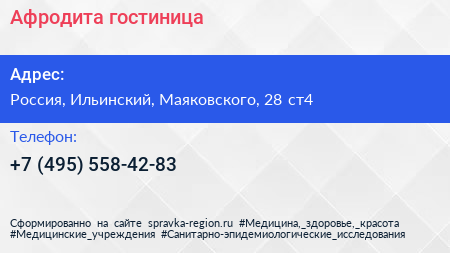 Афродита, гостиница по адресу ОАО "УТЦ авиа-22 гражданской авиации", 28, улица Маяковского, Быково, Раменский городской округ, Московская область, Центральный федеральный округ, 140120, Россия в дальнейшем Организация, размещена в следующих категориях: