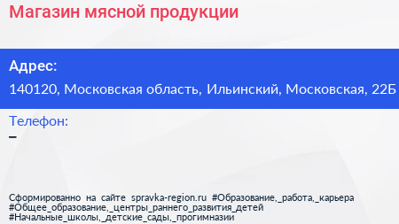 Магазин мясной продукции по адресу 140120, Московская область, Ильинский, Московская, 22Б в дальнейшем Организация, размещена в следующих категориях: