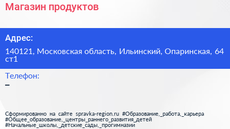 Магазин продуктов по адресу 140121, Московская область, Ильинский, Опаринская, 64 ст1 в дальнейшем Организация, размещена в следующих категориях: